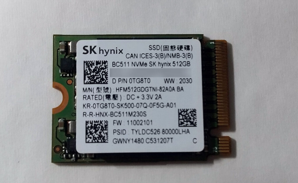 ロアケースを開け見てみるとSKの短いタイプのSSDが使われていました。このSSD復旧不能になる事が多く見つけ次第交換をお勧めしていましたが、見た瞬間、またかよ。でした。