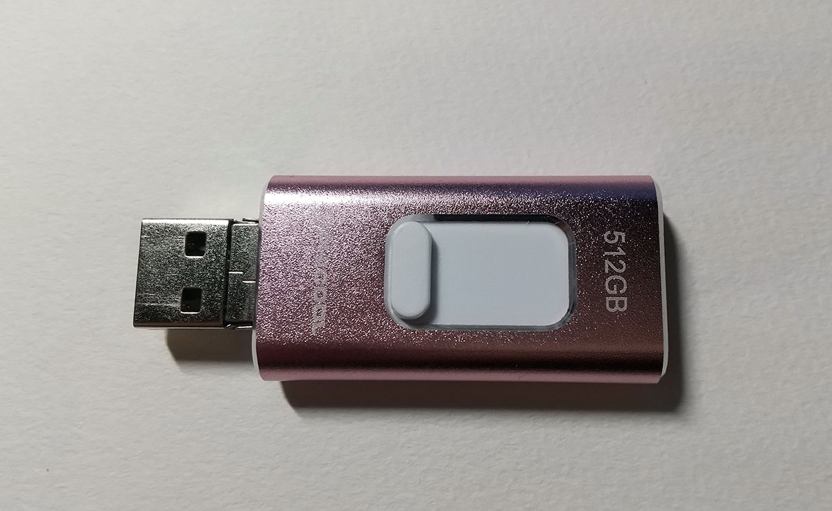 スライドで切り替えて使えますが、スライド自体直接差し込むとコネクタがダメになりやすく特にパソコンに接続すると間違えて曲げたり折ってしまう可能性がございますのでこの様なタイプはお勧めしません。ましてPhicoolとか聞いたことが無いものに大事なデータを入れるということはリスクしか無いです。容量偽造はありませんが、購入後1年立たずということで前に扱った時と症状がにていると感じました。調べるとこういう記事がありました。やはり黒とういうかグレーと言うか恐らくはスマホから取り外した物を使い作っているのではと思われました。