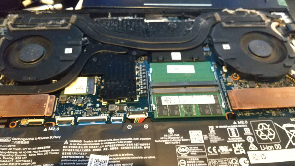 最初の指示通りの方法でパソコンを保管してくれていました。ざっと見てみると被ったものはおおよそぬけていたので、慎重に電源投入。通電!でも油断ならないのでお預かりし整った環境で作業をさせてくだいとご相談したところ了承。ただし仕事でどうしても必要なのでとの事で他にもパソコンは無いかとお尋ねしたところ、該当の前に使っていたもう一台のOmenを発見。液晶パネルがこわれているとのことでしたが、PS5を発見しHDMIで繋いだ所とりあえず起動。ただしかなりボロボロだったので先にこちらを治しi9を後にしパソコンが無い状況を少なくしましょうとお話して2台ともお預かり。