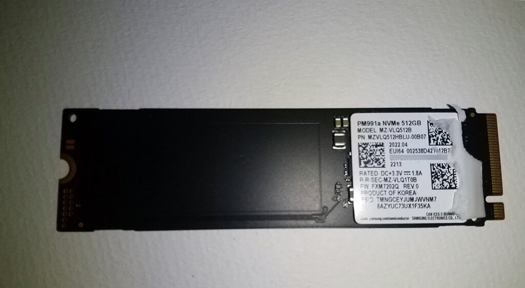 通常はコントローラチップとメモリ部分がそれぞれついていますが一つのチップで構成されているタイプです、ただしこのタイプはデータ復旧等が出来ないものもありますので気をつけないと行けないタイプです。なんでスペースに余裕があるのに、このタイプを選択したのか疑問でした。もちろん交換は通常の物に換装