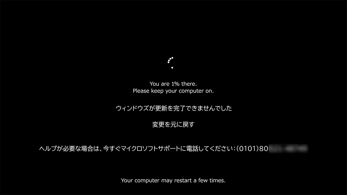 ウィンドウズが更新を完了できませんでした。と表示されパソコンが起動しない